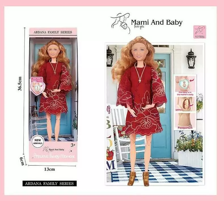 Лялька A 803-3 (72/2), висота 30 см, вагітна, немовля, відчиняється живіт, аксесуари, в коробці