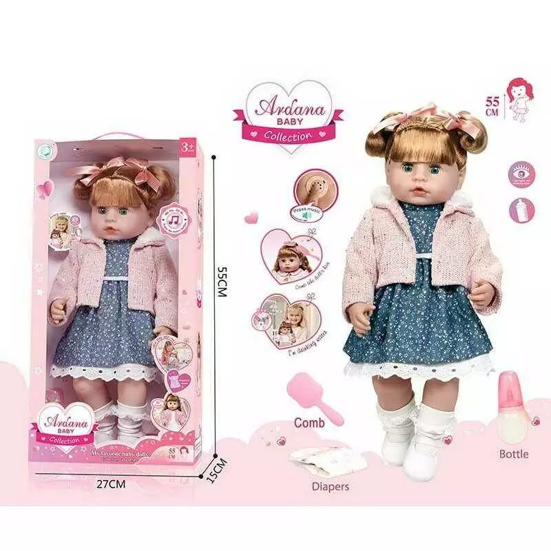 Головна > Каталог > Іграшки > Ляльки > Лялька A 911 B (12/2) гумова, висота - 52 см, заплющує очі, функціональна, прошите волосся, рухомі кінцівки, ходить на горщик, аксесуари, в коробці оптом