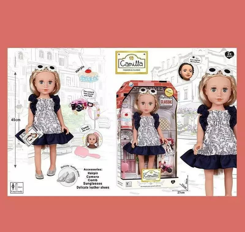 Лялька A 931 H (24/2) висота: 45 см, імітація скляних очей, закриває очі, прошите волосся, гребінець, аксесуари, в коробці