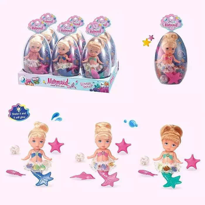 Фотография 1 товарной позиции интернет-магазина детских игрушек www.smarttoys.com.ua Лялька DH2328 морські мешканці 2 шт., в яйці, світло, бат(таб.), 6шт.(3 види) в диспл., 27,5-14-19см