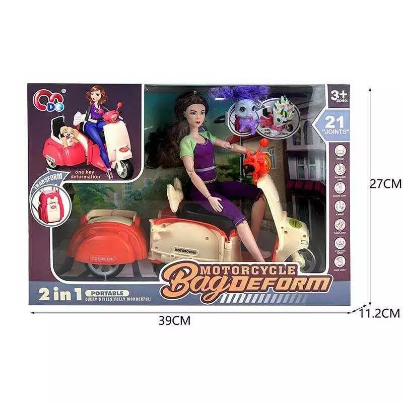 Лялька JJ 8723 (24/2) висота - 29 см, мопед трансформується у рюкзак, рухомі суглоби, улюбленець, в коробці