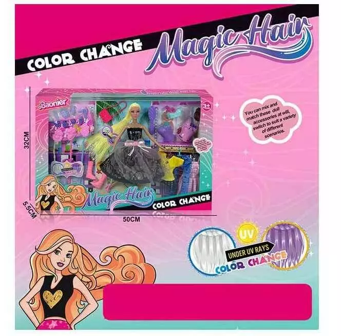 Лялька JJ 9913-3 G (30/2) висота - 30 см, змінює колір волосся, 3 знімні прядки, додатковий одяг, чоботи, гумова голова, аксесуари, в коробці