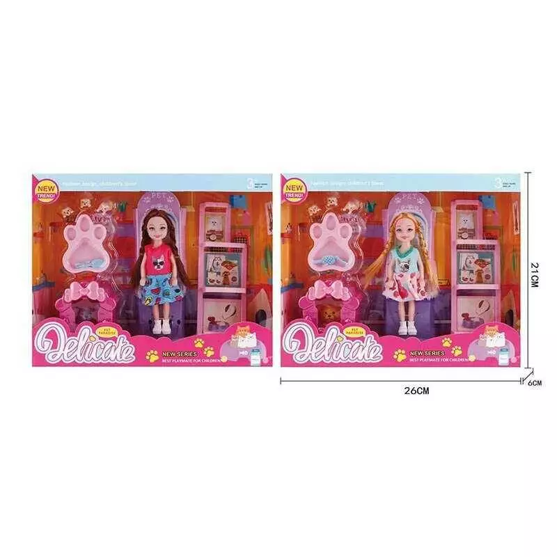 Лялька L 5-26 (96/2) 2 види, висота 14 см, аксесуари, улюбленці, в коробці