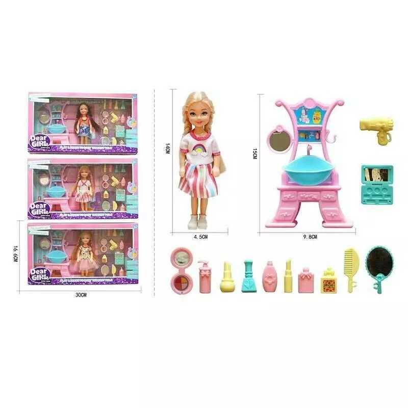 Лялька L 5-31 (120/2) 3 види, висота: 14 см, аксесуари, знімний одяг, косметичний столик, в коробці, ВИДАЄТЬСЯ МІКС ВИДІВ