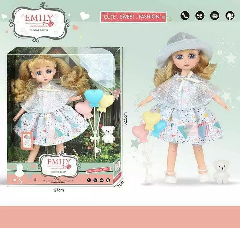 Лялька QJ 136 C (48/2) накидка, панамка, повітряні кульки, ведмедик, в коробці
