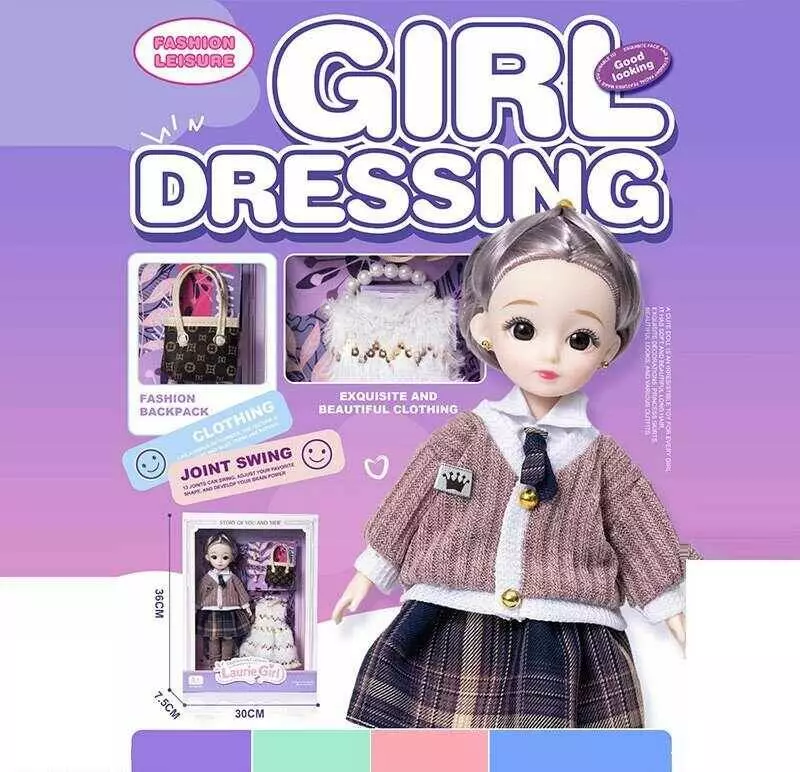 Лялька Q-A 18 (72/2) висота - 30 см, тіло — пластик, голова — гума, шарнірні з’єднання суглобів, знімне взуття, змінний одяг, аксесуари, в коробці