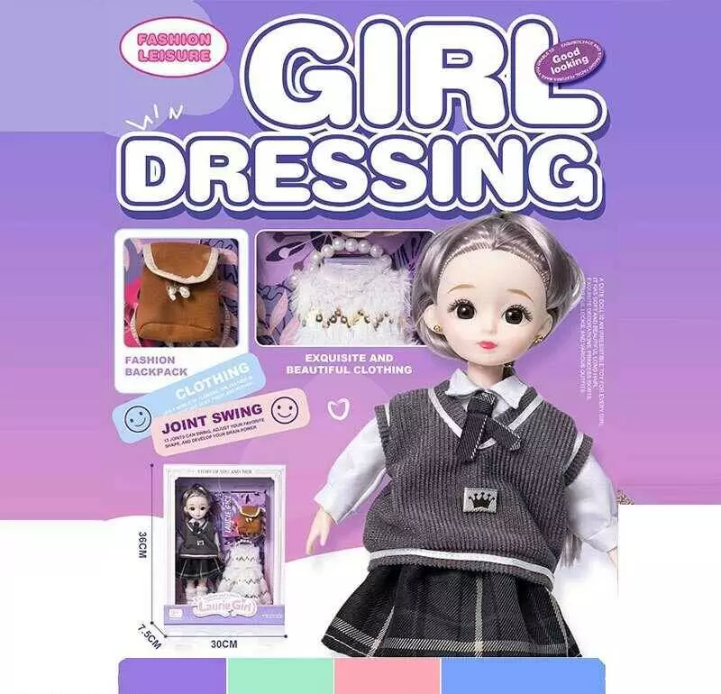 Лялька Q-A 22 (72/2) висота - 30 см, тіло — пластик, голова — гума, шарнірні з’єднання суглобів, знімне взуття, змінний одяг, аксесуари, в коробці