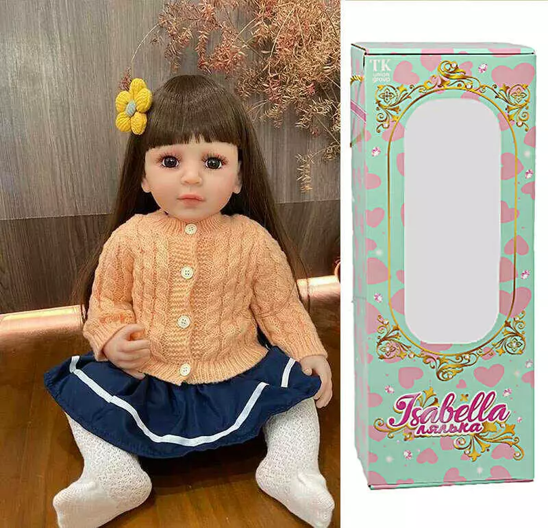 Лялька QM 125 (12) "TK Group", висота: 50 см, гумова, імітація скляних очей, пустушка, пляшечка, памперс, шкарпетки, прикраса для волосся, в коробці