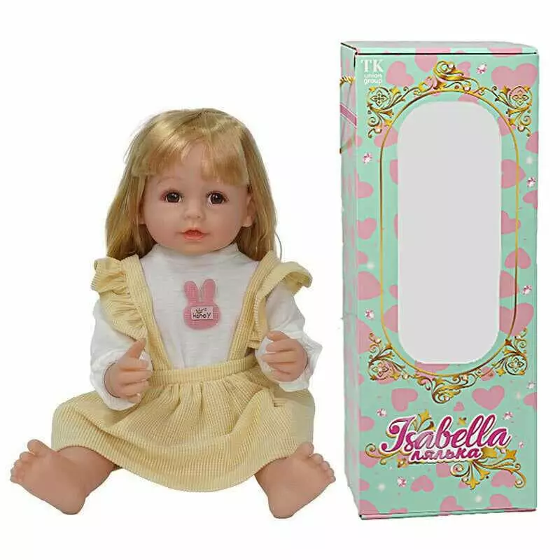 Лялька QM 24038-2 (12) "TK Group", висота: 50 см, гумова, імітація скляних очей, пустушка, пляшечка, памперс, в коробці