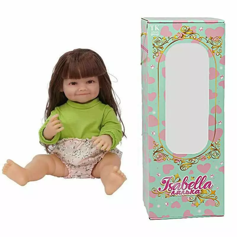 Лялька QM 24038-3 (12) "TK Group", висота: 50 см, гумова, імітація скляних очей, пустушка, пляшечка, памперс, в коробці