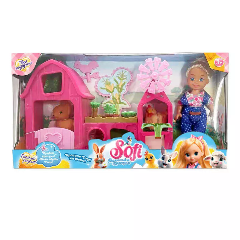 Лялька Sofi 49430 (72/2) “На фермі”, висота ляльки 11 см, будиночок, фігурки тварин, в коробці