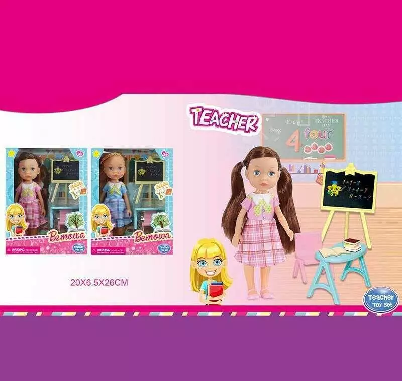 Лялька WG 052 (72/2) 2 види, “Вчителька”, парта, стілець, дошка, висота 25 см, в коробці