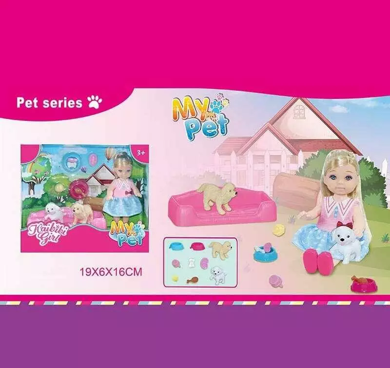 Лялька WG 615 (144/2) 12 см, улюбленці, аксесуари, лежанка, в коробці