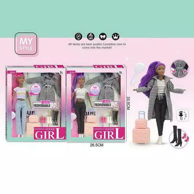 Лялька WX 257-4 (48/2) 2 види, 30 см, аксесуари, валізка, гребінець, шарнірні суглоби, знімний одяг, прошите волосся, в коробці