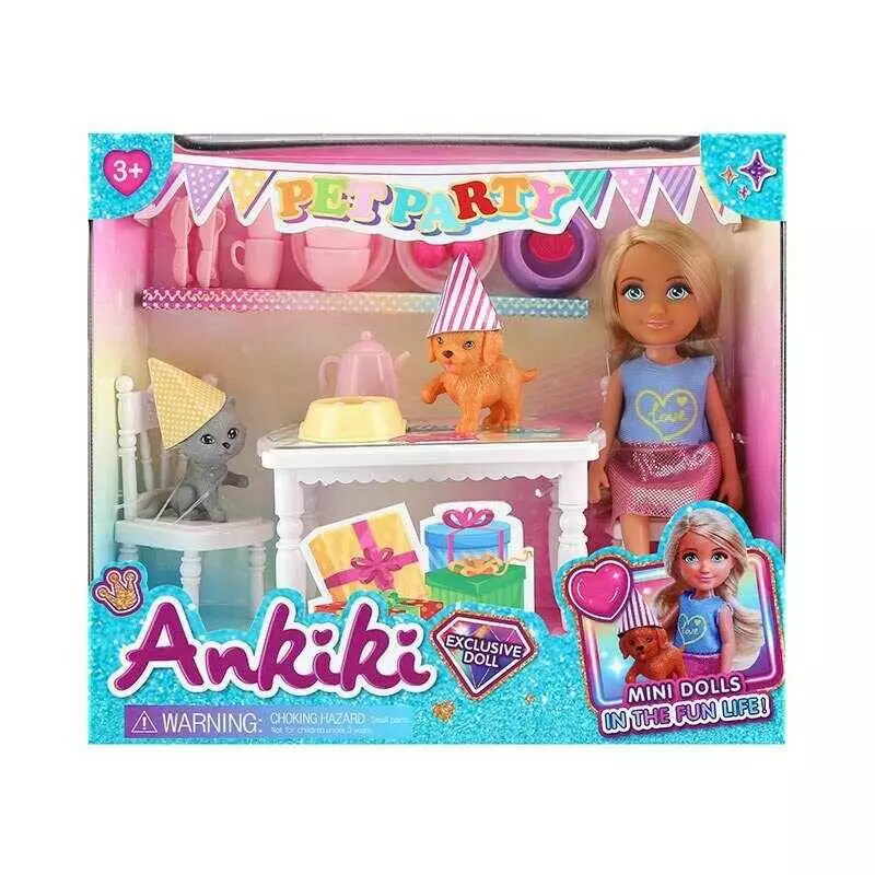 Лялька з аксесуарами 606011 (48) “вечірка для тварин”, висота ляльки - 13.5 см, меблі, посуд, кіт, собака, в коробці