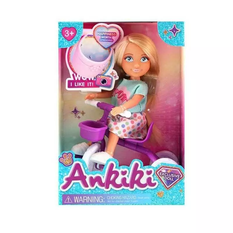 Лялька з аксесуарами 606026 (96) висота ляльки - 13 см, шарнірні суглоби, триколісний велосипед, козирок, в коробці