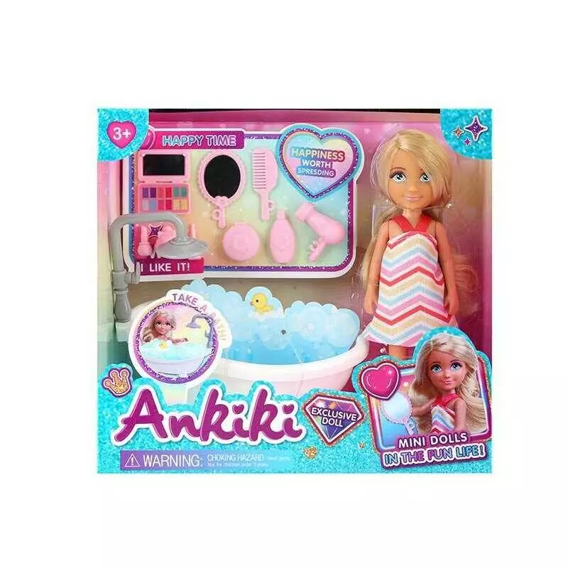 Лялька з аксесуарами 606032 (48) висота - 13 см, ванна, аксесуари, прошите волосся, гумова голова, в коробці