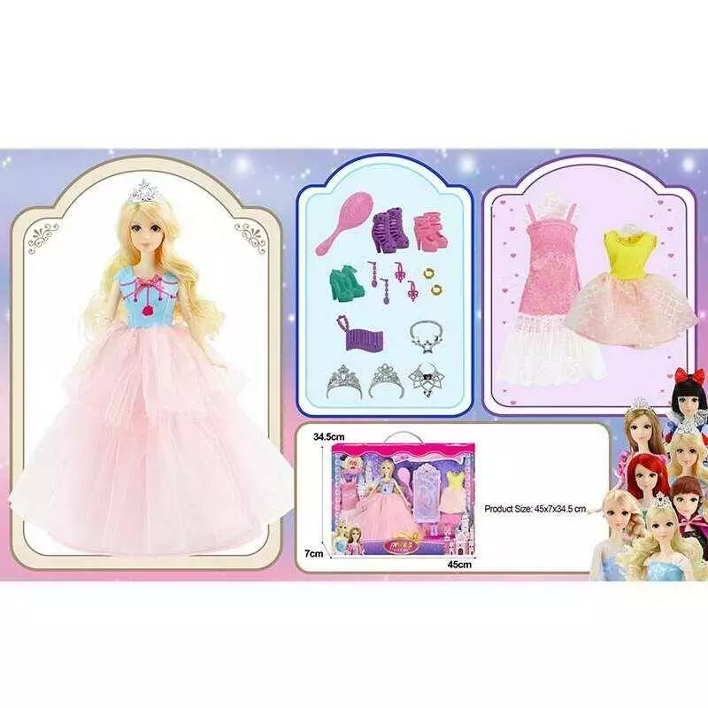 Лялька з аксесуарами 91062-5 (24/2) висота 30 см, діадеми, сережки, намиста, сумочка, гребінець, сукні, туфлі, в коробці