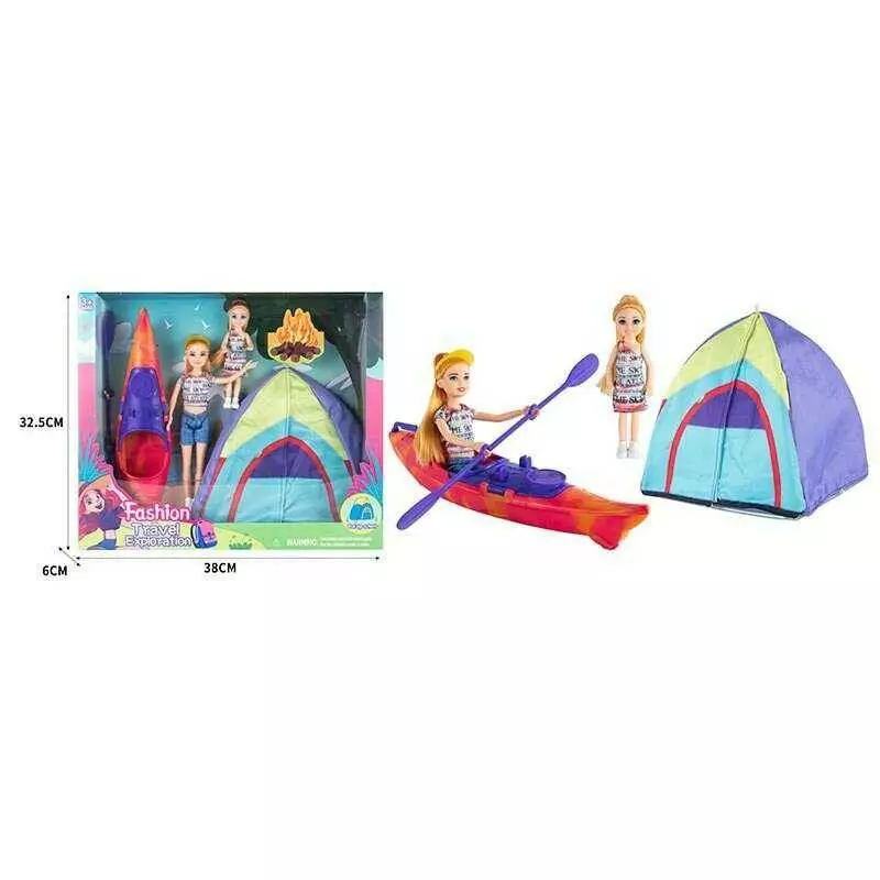 Лялька з аксесуарами ST 5616-12 (36/2) 2 ляльки, намет, байдарка, висота 23 см, в коробці