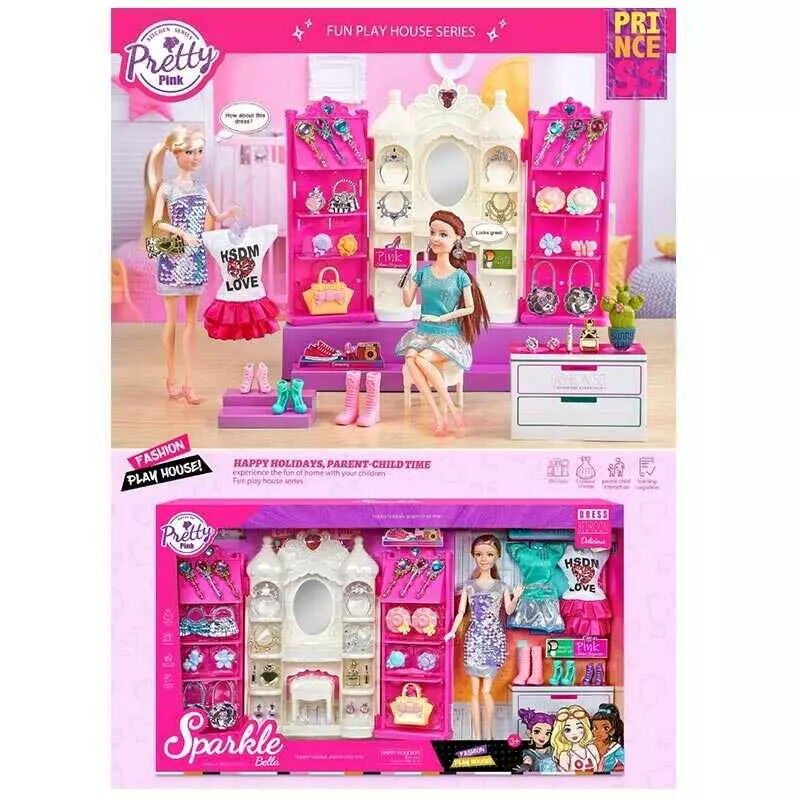 Лялька з меблями 7025 (12) туалетний столик, шафа, висота ляльки 30 см, прикраси, одяг, взуття, аксесуари, рухливі кінцівки, в коробці