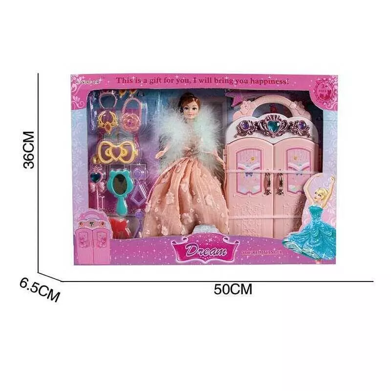 Головна > Каталог > Іграшки > Ляльки > Лялька з меблями 8617 (24) велика шафа, руки та ноги з точками артикуляції, аксесуари, висота 30 см, в коробці оптом