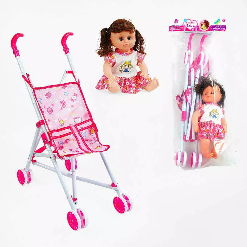 Візок з лялькою LA 66-2 (36/2) лялька плаче, сміється, заплющує очі, висота 31 см, в пакеті