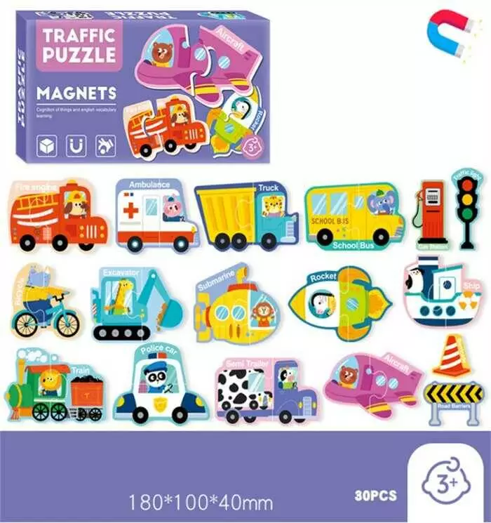 Магнітні пазли C 73799 (96) “Транспорт”, назви англ. мовою, 30 елементів, в коробці