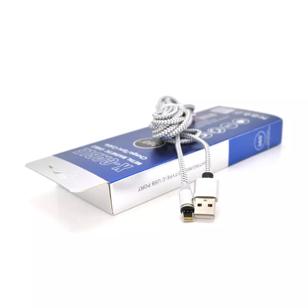 Магнітний кабель PiPo USB 2.0 /Lighting, 2m, 2А, тканинна оплетка, броньований, знімач, Silver, BOX