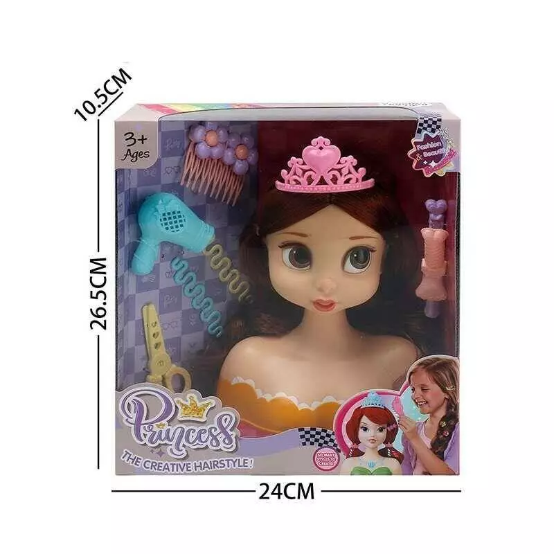 Манекен для зачісок LK 1713 B (48/2) аксесуари, корона, фен, ножиці, шпильки, в коробці