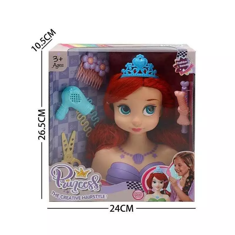 Манекен для зачісок LK 1713 D (48/2) аксесуари, корона, фен, ножиці, шпильки, в коробці