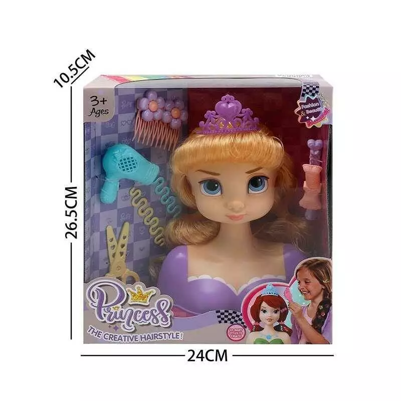 Манекен для зачісок LK 1713 G (48/2) аксесуари, корона, фен, ножиці, шпильки,в коробці