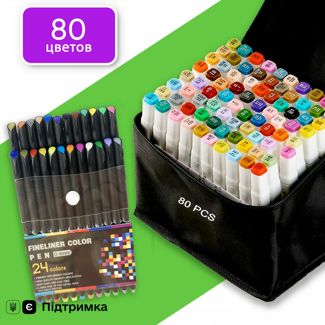 Маркеры двусторонние Touch 80 цветов и набор лайнеров 24 цвета для