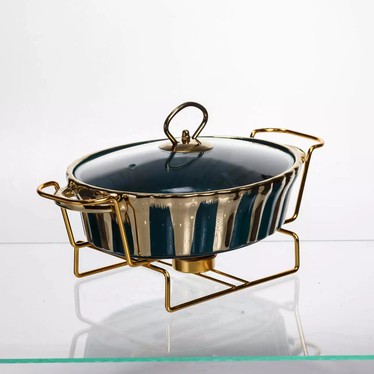 4. Нагрівальний елемент: Підігрів від стандартної чайної свічки підтримує оптимальну температуру страв у процесі сервірування.