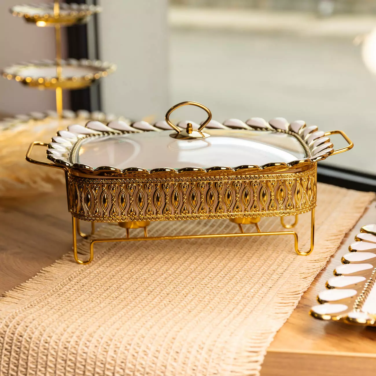 Мармітниця порцелянова Tiffany об’ємом 1.5 л призначений для підтримання температури готових страв під час подачі. Завдяки конструкції з металевою підставкою та можливістю використання свічок-таблеток, він дозволяє зберігати тепло без підключення до електромережі. Такий формат зручний для сервірування столу вдома, на святкових заходах або у закладах громадського харчування.