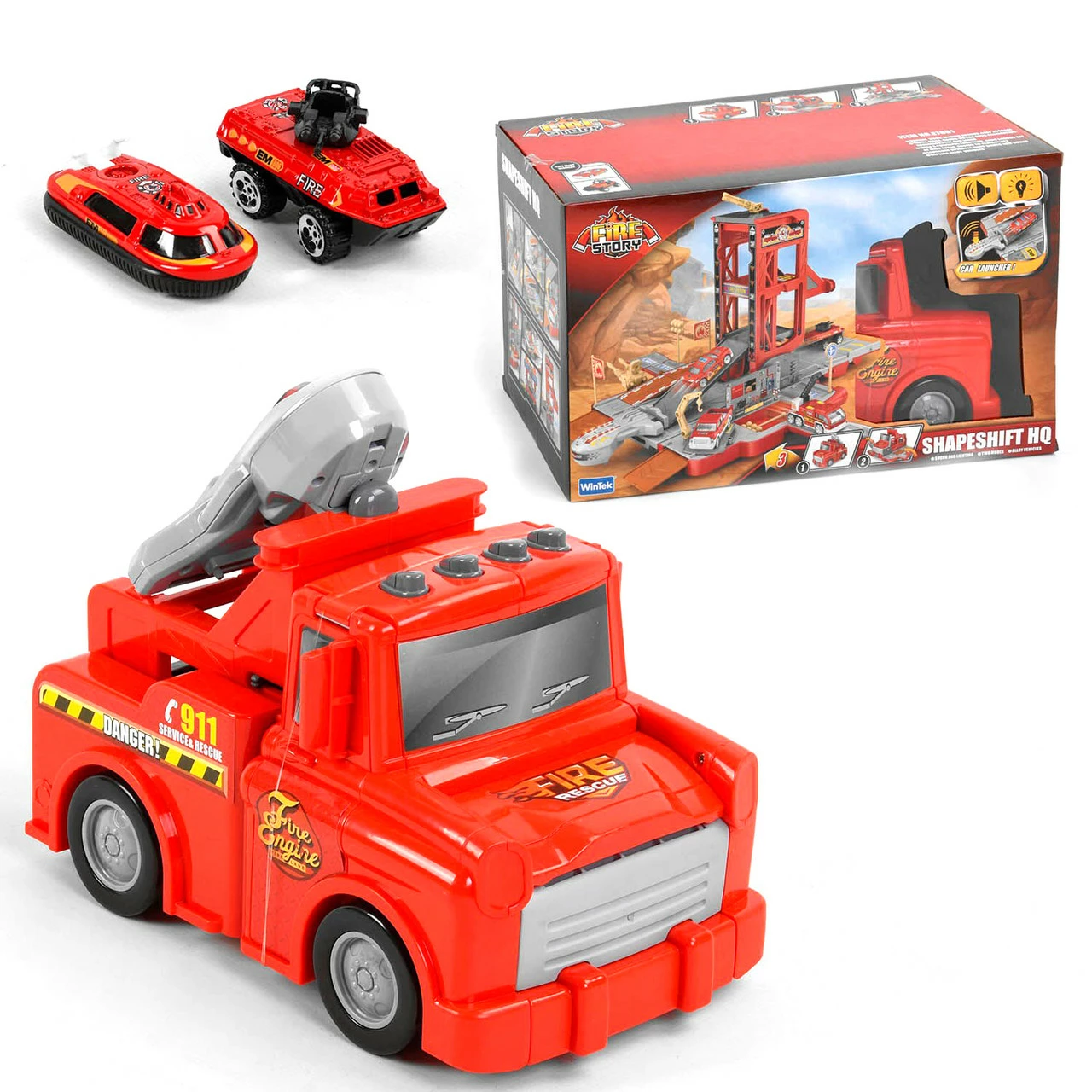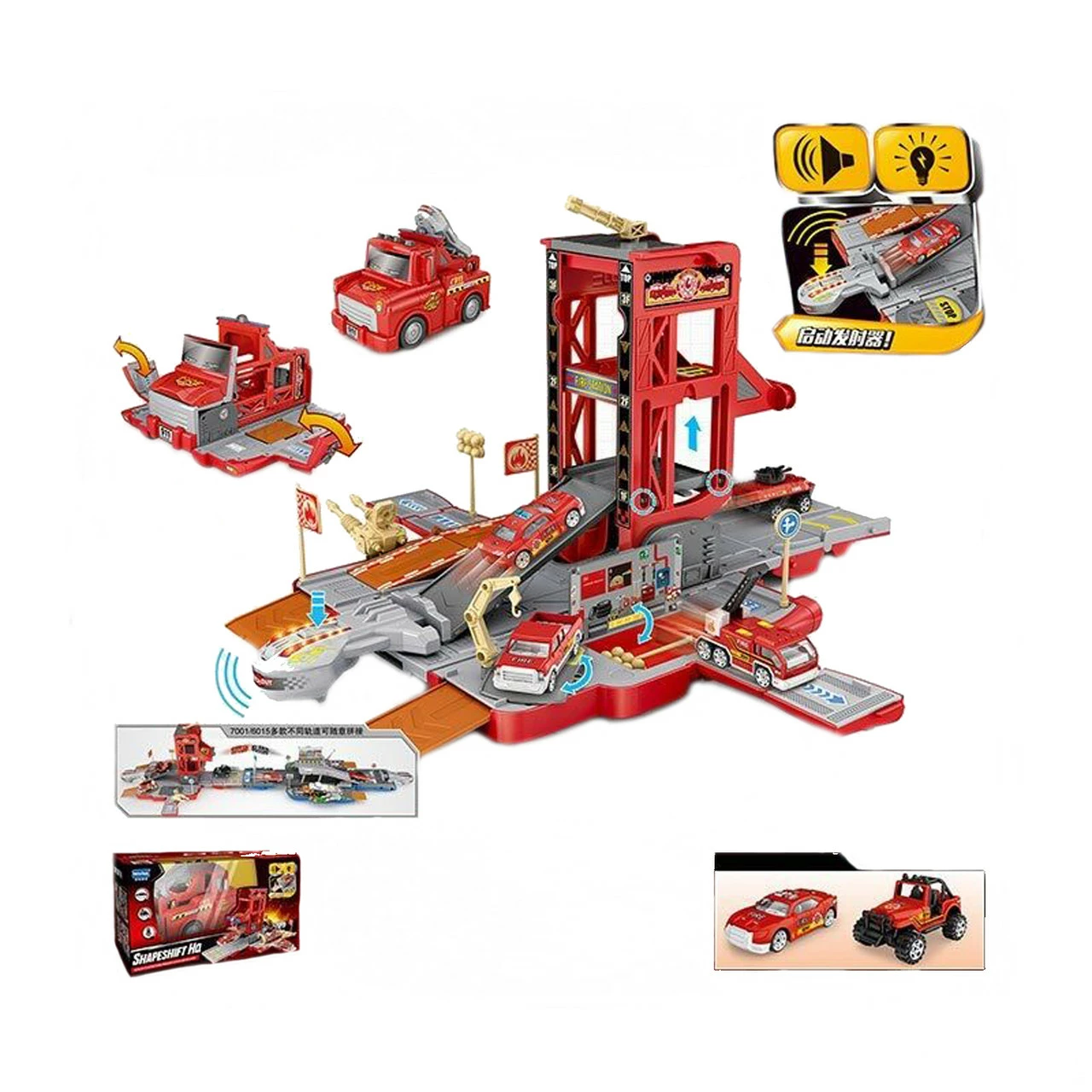 Современная парковка 2в1 Kimi представлена в виде пожарной машины.
