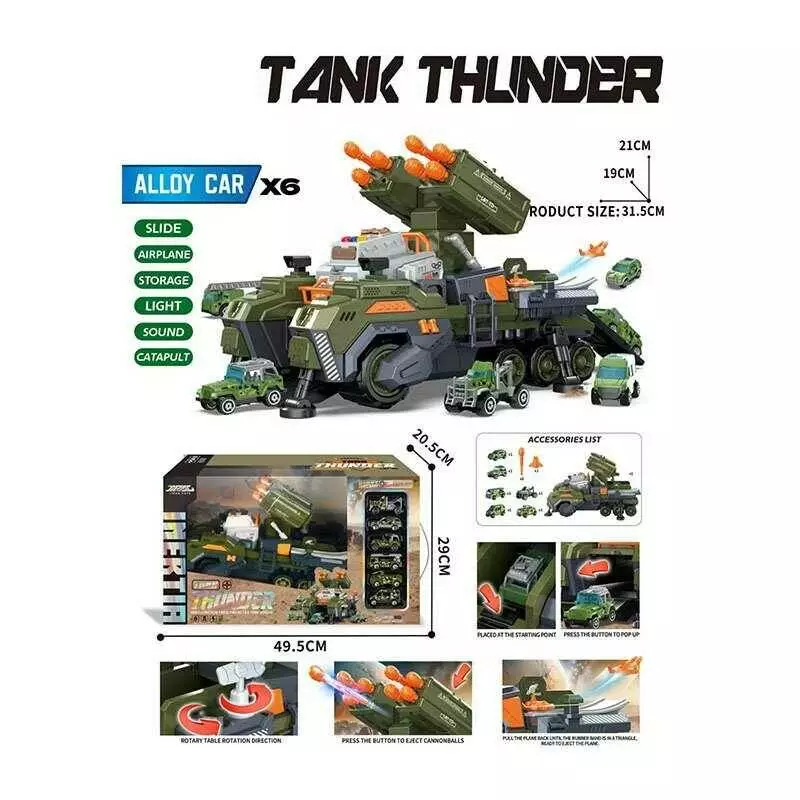 Військова машина JP 588-18 (9) на батарейках, звук, підсвічування, інерція, металопластикові машинки, пускова установка, в коробці