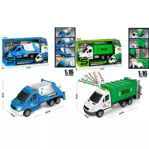 Машина JS137A-JS138 інерц., сміттєвоз, 1:16, 2 види, муз., світло, бат., кор., 33-17,5-13 см.