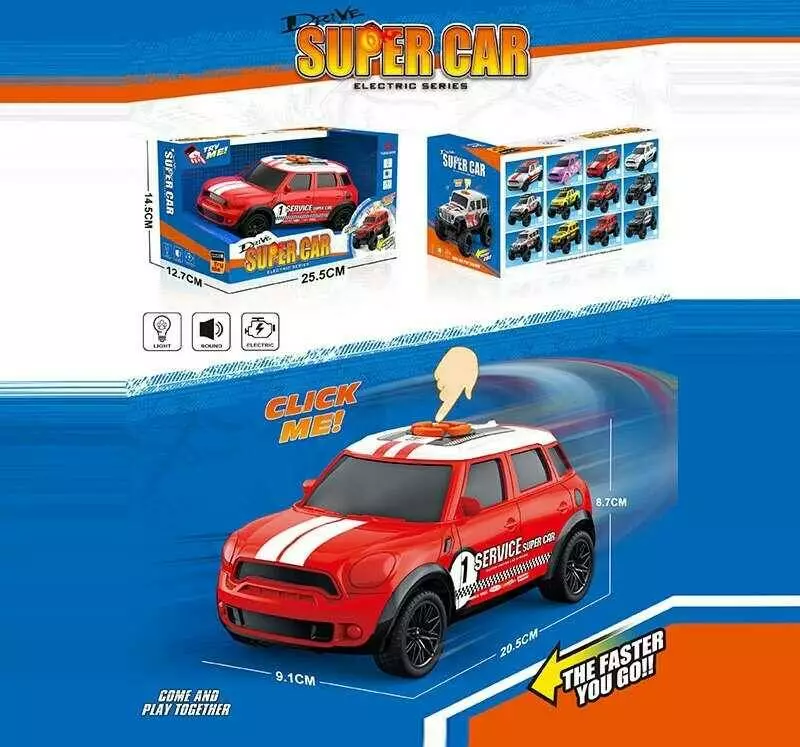 Машина музична E 25-3 (60/2) світло, звук, їздить вперед та назад, гумові колеса, масштаб 1:18, в коробці