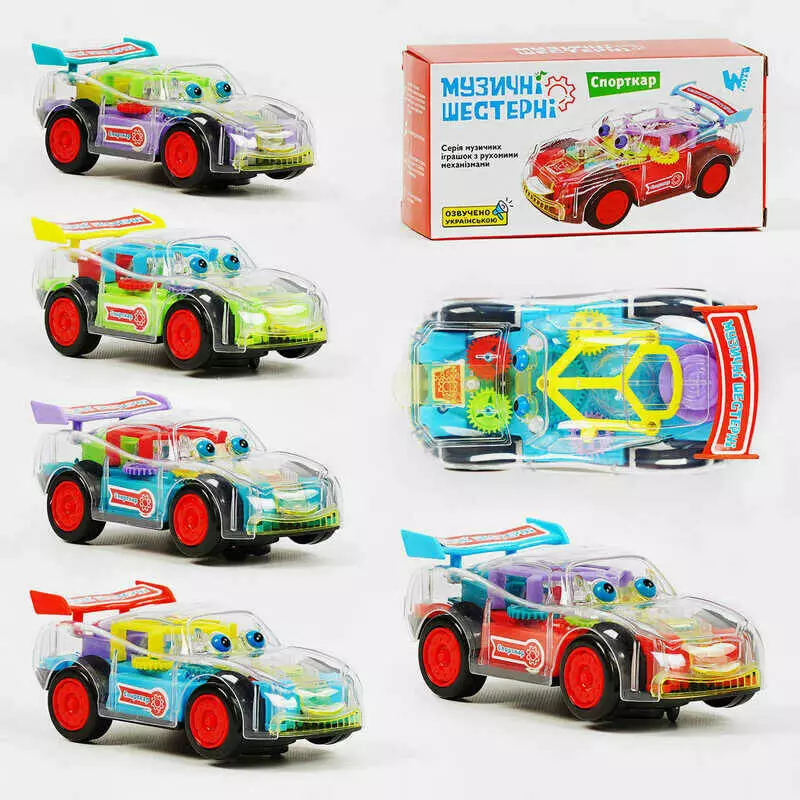Машина на батарейках 56350 (96) "WToys", 5 видів, ОЗВУЧУВАННЯ УКРАЇНСЬКОЮ МОВОЮ, світло, звук, рухомі елементи, прозорий корпус, шестерні, в коробці