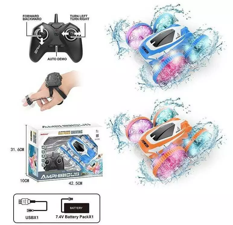 Машина на радіокеруванні 666-816 SDA (18) 2 види, амфібія, акум.: 7.4 V, пульт: 2.4 GHz, браслет, оберт: 360°, підсвіч., первертиш, в коробці, МІКС
