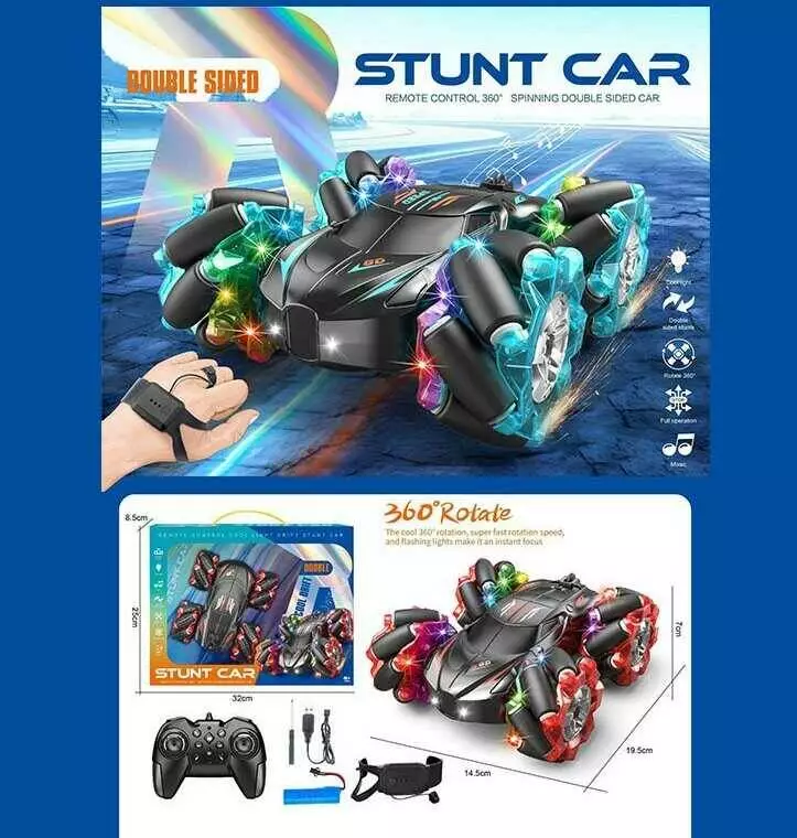 Машина на радіокеруванні 888-21 (36) 2 види, перевертиш, акумулятор: 3.7 V, пульт, браслет, оберт на 360°, підсвічування, музика, в коробці, МІКС