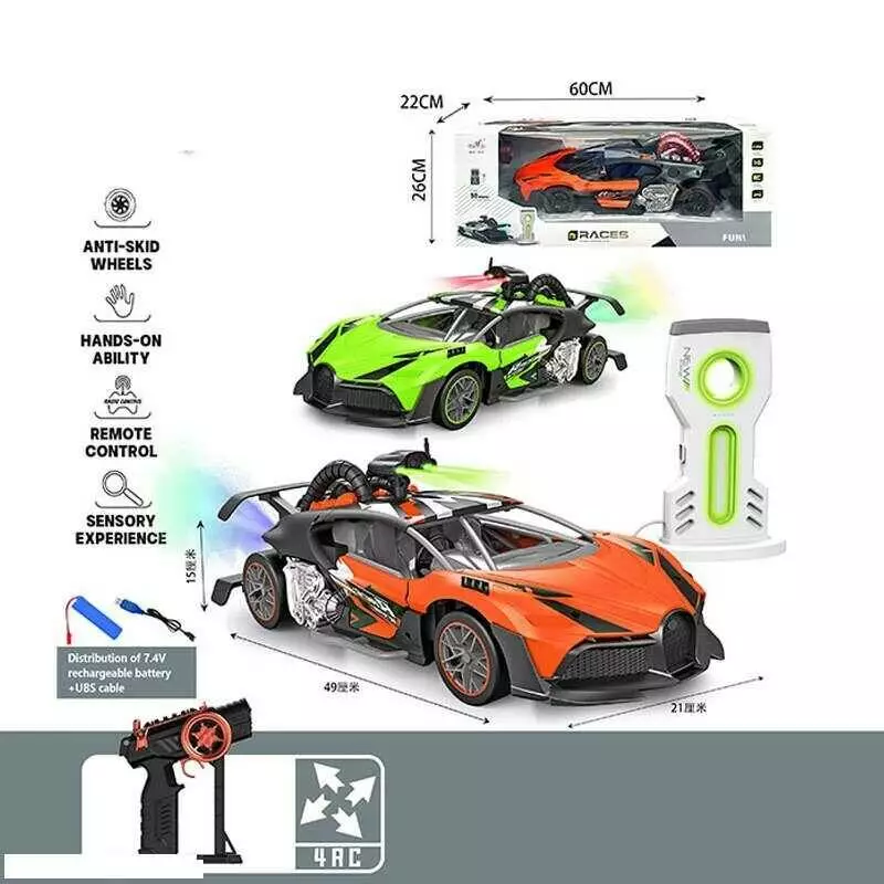 Машина на радіокеруванні 911-712 A (8) 2 види, електромобіль, зарядна станція, відчиняються дверцята, парогенерація, підсвічування, акум. 7.4V, в коро