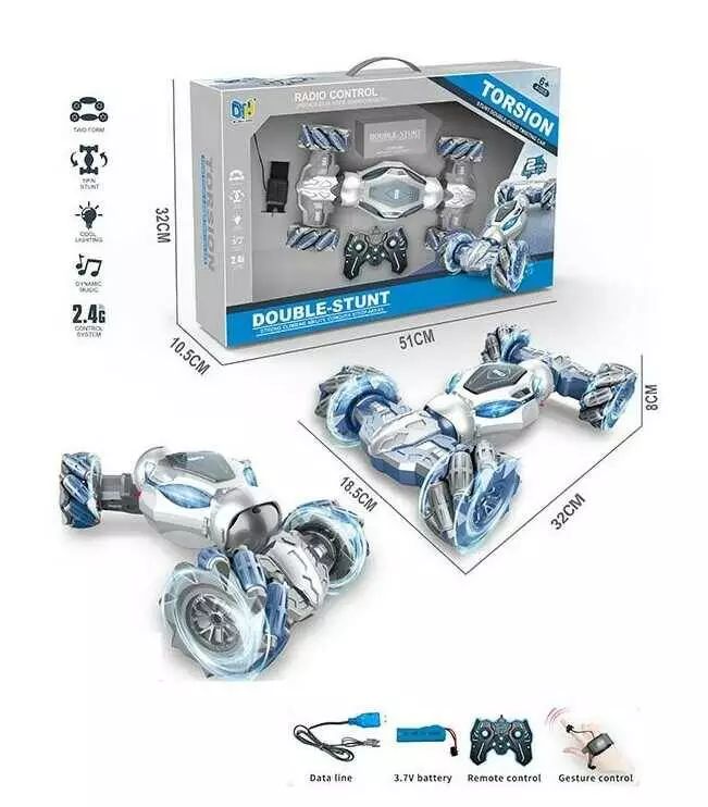 Машина на радіокеруванні DH 666-79 B (18) підсвіч., ролик. кол., пульт 2.4G+сенсорний браслет, USB-каб., акум. 3.7V, звуки, беззвуч. реж., зміна полож