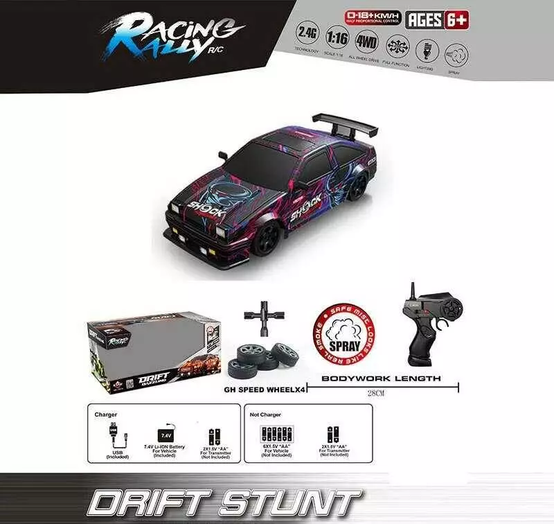 Машина на радіокеруванні SC 16 A 15 (12) масштаб 1:16, акумулятор 3.7V, пульт керування 2.4 GHz, дрифтує, 4WD, змінні колеса, підсвічування, в коробці