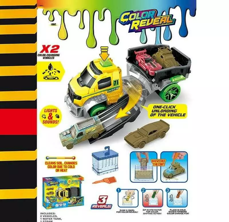Машина SK 337 SB (30) 2 металопластикові машинки, змінює колір, піпетка, механічний запускач, рухливі елементи, звук, підсвічування, в коробці