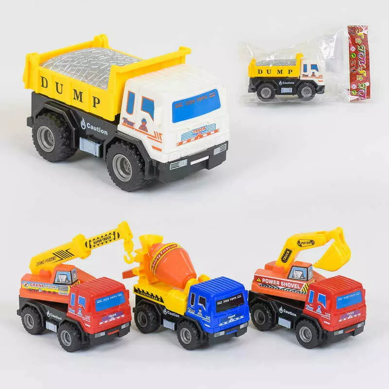 Машинка 399-267 (360/2) “Строительная техника”, 4 вида, инерция, подвижные детали, 1шт в пакете