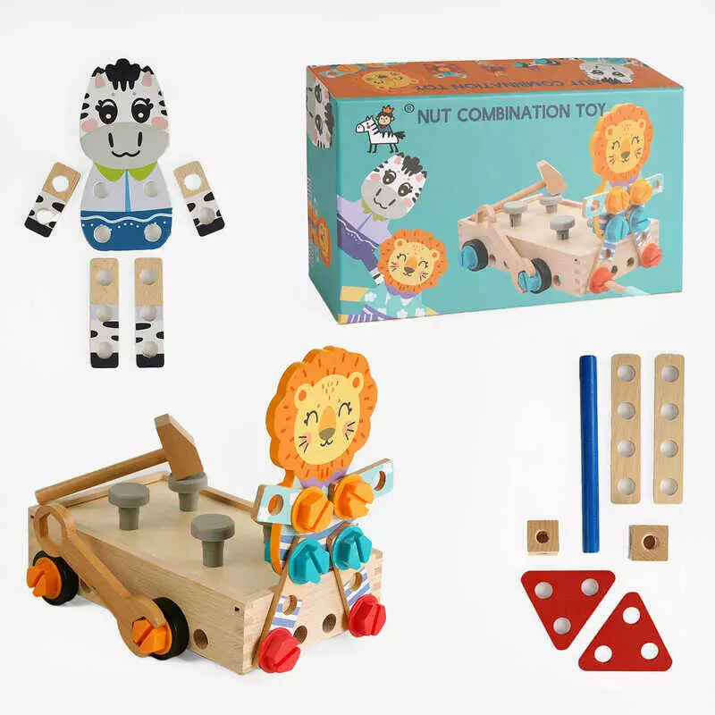 Бізіборд дерев’яний C 61685 (18) "Машинка", болти, гайки, молоточок, в коробці