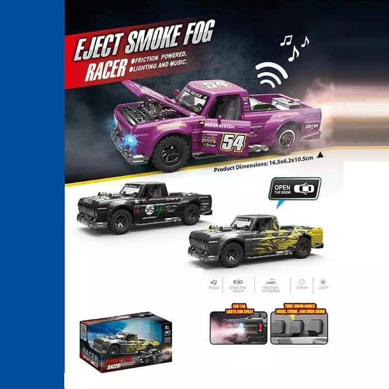 Машинка FTP 1 A (120/2) 4 види, довжина 16 см, світло, звук, мелодії, пара, інерція, капот/двері відчиняються, гумові шини, в коробці, МІКС