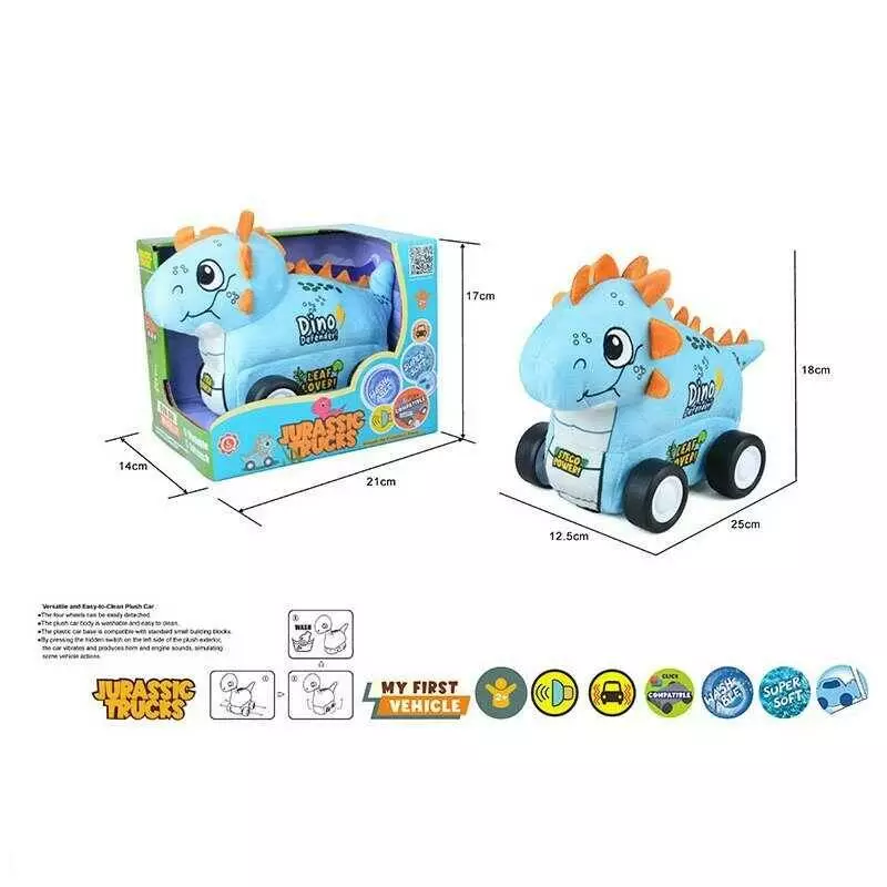 Машинка м`яка QL 8904 C-5 (48/2) “Динозавр”, звуки транспорту, веселі мелодії, вібрація, знімний чохол, гумові шини, на батарейках, в коробці