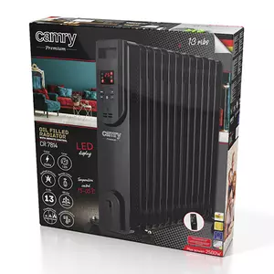 Потужний масляний радіатор CR 7814 з дистанційним керуванням і видимим світлодіодним дисплеєм. Він дозволяє обігрівати кімнату, в якій радіатори відсутні або недостатньо ефективні. Незамінний при виході з ладу системи опалення. діапазон від 15 ° C до 35 ° C, працює на 3-х рівнях потужності. Нагрівач автоматично регулює споживану потужність відповідно до заданої температури нагрівання. Для безпеки використання пристрій оснащений захистом від перегріву. Радіатор виконаний в елегантній лінії, тому його можна розмістити в місці прийому. гостей будинку або клієнтів в офісі. Пристрій має пульт дистанційного керування. Версія CR 7814 має 13 ребер нагрівання і потужність 2500 Вт.